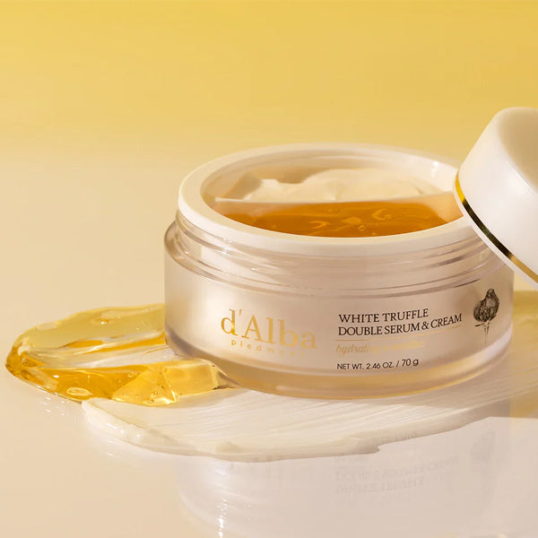 d'Alba - White Truffle Double Serum & Cream ir luksusa Korejas kosmētikas 2-in-1 produkts, kas apvieno atjaunojoša seruma un mitrinoša krēma īpašības. Šī augsti efektīvā formula ar balto trifeļu ekstraktu intensīvi baro, mitrina un izgaismo ādu, palīdzot cīnīties ar priekšlaicīgas novecošanās pazīmēm. Šis serums-krēms nodrošina sabalansētu ādas kopšanu, efektīvi pielāgojoties katra ādas tipa vajadzībām.